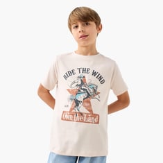 Juniors Graphic Print Crew Neck T-shirt with Short Sleeves
