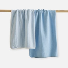 The blanket set is a must-have for your baby's essentials making them perfect for swaddling, burping, or as a lightweight cover. Made from soft and breathable fabric, these blankets are gentle on your baby's delicate skin. The set includes two blankets with a solid and striped design, adding a touch of fun and style to your nursery.
