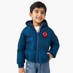 This Spider-Man print hooded jacket offers warmth and style for young adventurers. The attached hood and waterproof fabric provide protection from the elements. This lightweight jacket features a fun Spider-Man print, making it a perfect choice for boys who love the iconic superhero. The full zip closure allows for easy on and off, ensuring comfort and practicality for everyday wear.