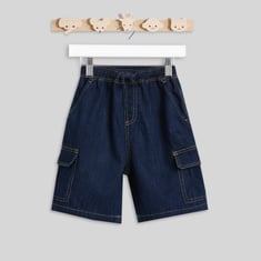 These denim cargo shorts offer a practical and comfortable style for everyday wear. Designed with a drawstring waist, washed finish, and cross pockets, they provide a secure and adjustable fit. The flap pockets add a classic cargo touch while offering extra storage for small essentials.