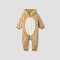 Ensure your little one stays wonderfully warm in this adorable coverall, crafted from exceptionally soft material. This warm baby all-in-one is designed with a full-length zip closure for effortless dressing and changing, while the charming animal hood adds a playful touch. The long sleeves and ribbed cuffs provide a snug, secure fit to keep out the cold, making this hooded sleepsuit an ideal choice for naps, playtime, or simply cuddling at home on cooler days.
