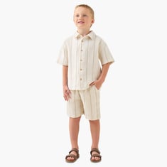 Add a polished touch to his summer wardrobe with this embroidered shirt and shorts set. The collared, short-sleeve shirt features delicate embroidery and a button-down front, paired with matching shorts designed with an elasticated waistband for all-day comfort. Crafted from soft breathable fabric.