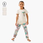 This printed set combines comfort and style for sleep or lounge wear. The t-shirt features a classic round neck and short sleeves, offering a relaxed fit. Paired with pyjamas that include a drawstring closure, this set ensures a secure and adjustable fit. A cosy and practical addition to your little one's wardrobe.