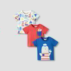 Add playful charm to his everyday wardrobe with this set of three sailors print t-shirts. Each tee features cheerful nautical-inspired prints, short sleeves, and a classic crew neckline, making them perfect for daily wear. Crafted from soft, breathable fabric.