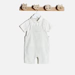 This two-piece set is perfect for your baby boy's casual wardrobe. Made from soft cotton, they're comfortable and easy to wear. The set includes a collared shirt with short sleeves and a matching romper. They're perfect for any occasion, from playdates to family gatherings.