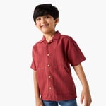 Juniors Textured Camp Collar Shirt with Short Sleeves