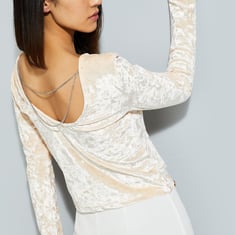 This velour top features a classic round neck and long sleeves, offering a luxurious, soft-to-the-touch feel. Its plush fabric provides warmth and style, making it perfect for a cozy yet chic look during cooler days. Ideal for casual wear or layering with your favorite outfits.