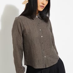 Add a stylish edge to your wardrobe with this patterned boxy fit shirt. Featuring a spread collar, button closure, and full sleeves, it blends relaxed comfort with a polished, modern look.