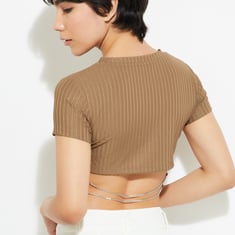 Add a playful touch to your wardrobe with this striped crop top, featuring a flattering round neck and stylish half sleeves. The back tie-up detail not only enhances the fit but also adds a trendy element to the design. Perfect for pairing with high-waisted jeans or skirts, this crop top is ideal for both casual outings and summer adventures.