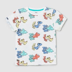 Get your little one vacation-ready with this comfortable and stylish all-over printed T-shirt featuring short sleeves and a crew neck.