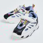 Sport and comfy, this pair of shoes includes a lace-up panel and a Velcro strap. It is designed with a colourblock upper with mesh panels, padded collar and tongue, cushioned insole, and durable outsole.
