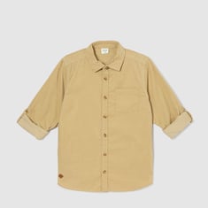 Your child can stay stylish and comfy in this amazing corduroy shirt. Featuring a classic spread collar, full sleeves, and a convenient patch pocket, this shirt effortlessly combines fashion and functionality for a perfect everyday look.