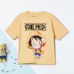 This One Piece print t-shirt features a bold design showcasing characters from the iconic anime. With a classic crew neck and half sleeves, it offers a comfortable and relaxed fit.