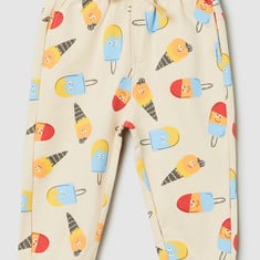 Liven up his basic wardrobe with this pair of joggers. It is designed with a drawstring waist, side pockets, a back patch pocket, all-over prints, and ribbed trim.