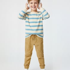 This striped T-shirt features a classic crew neck and full sleeves, combining timeless style with comfortable wear. Perfect for layering or wearing on its own.
