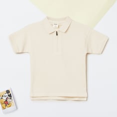 Elevate your style with this textured polo t-shirt. With a sharp polo collar, zip closure, and half sleeves, it’s the perfect mix of comfort and sophistication for any casual outing.