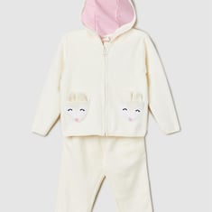 Keep your little one comfortable throughout the day with this sleepsuit that has been designed with applique pockets. This sleepsuit includes a sweatshirt that has full sleeves, zip-through closure, and a hooded neck. The pyjamas have a solid surface and a drawstring closure.