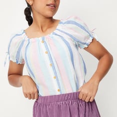Girls Striped Tie-Up Sleeve Top