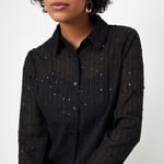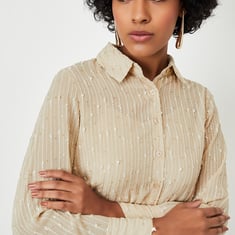 Elevate your ensemble with this blouse, featuring intricate embroidery, a classic spread collar, and full sleeves for a sophisticated touch. The button-up front adds a refined finish, and the coordinating camisole ensures a complete, polished look. Perfect for effortlessly transitioning from day to night.