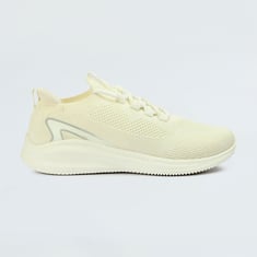 Stay active and stylish in this pair of sports shoes. It features a knit upper that offers breathability, round toe, and lace-up closure. The pull tab at the back heel allows easy on and off. The contrast overlays on the upper adds to the style.