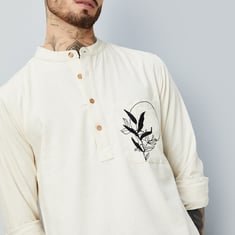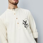 This pocket embroidery kurta blends traditional style with modern flair, featuring a button placket and a sleek band collar. The full sleeves add an extra touch of elegance, making it perfect for both casual and semi-formal occasions.