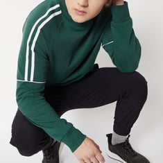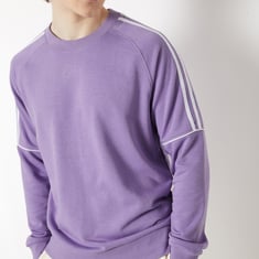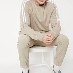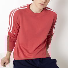 Add a sporty edge to your look with this side striped sweatshirt, featuring a classic crew neck and full sleeves. Comfortable and versatile, it’s perfect for everyday wear.
