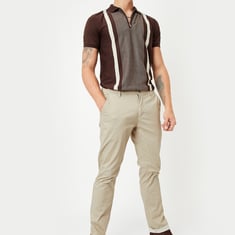 Step up your style game with this pair of chinos. The flexible waist ensures a snug, adjustable fit, while the slim fit flatters your silhouette. It has a belt loop waist, 4 pockets, and a full-length profile.