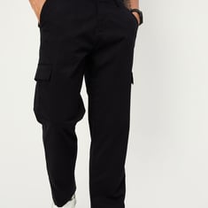 Men Slim Fit Solid Flexi Waist Cargo Chinos
