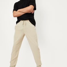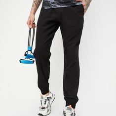 Gear up for the gym in style with these joggers in a solid-tone finish. It boasts a drawstring waist, cross pockets, and a back zip pocket to place your essentials.