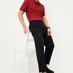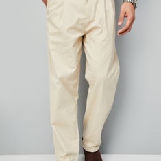 These solid pleated regular fit chinos offer a refined silhouette with a comfortable mid-rise waist. Designed with a button closure, belt loops, and four functional pockets, they bring classic tailoring to everyday wear.