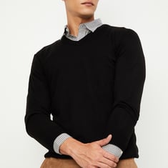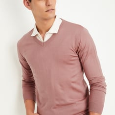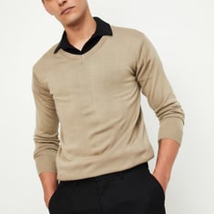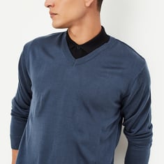 Embrace the season in style with this solid sweater, featuring a classic V-neck, full sleeves, and a ribbed hem. Perfect for layering up in comfort while keeping your winter look effortlessly chic.