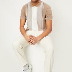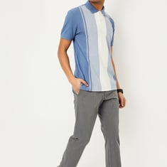 Add a touch of classic style to your wardrobe with this striped polo T-shirt. Featuring half sleeves, a polo collar, and a button placket, it effortlessly blends comfort with fashion.