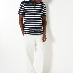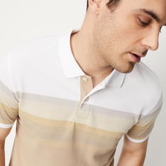 Get your casual collection to the next level with this polo. It features a striped surface, a polo collar, half sleeves, and a button placket.