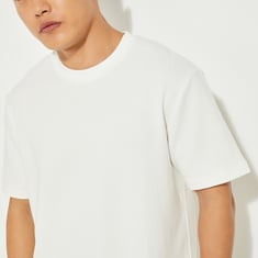 A timeless essential, this textured T-shirt features a classic crew neckline and comfortable half sleeves. Its textured design makes it a versatile wardrobe staple, perfect for layering or wearing on its own for effortless style.