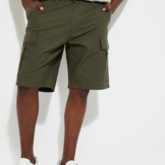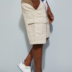 Gear up for an effortlessly cool look with this pair of shorts. The cargo pockets on the sides give a utilitarian vibe. The features include a drawstring waist, insert pockets, and back welt pockets. The woven checked pattern completes the look.