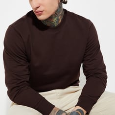 This knit sweatshirt features a classic crew neck, full sleeves, and a ribbed hem for a snug, comfy fit. Crafted for everyday ease, it blends warmth with casual style.