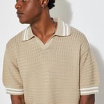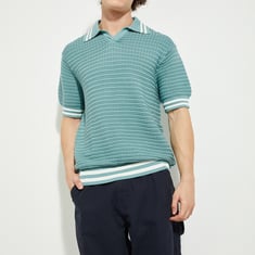 Jazz up your summer wardrobe with this cool T-shirt, blending effortless comfort and street style. The open-knit design with striped ribbed trim adds a trendy twist, while the johnny collar and half sleeves keep it casual yet edgy. Perfect for levelling up your streetwear game.