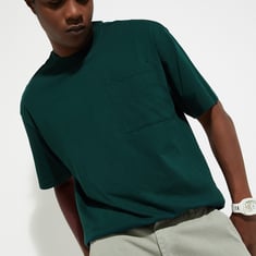 Upgrade your casual wardrobe with this solid-finish T-shirt. Designed with a classic crew neck, short sleeves, and a patch pocket, its oversized profile delivers that perfect urban vibe.