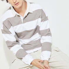A perfect blend of classic style and modern comfort, this sweatshirt is a season must-have. It features bold stripes and a polo collar for a fresh, stand-out look. With full sleeves and ribbed trim, it combines cosy warmth with a relaxed fit, making it perfect for layering or rocking solo.
