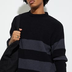 Level up your urban style with this oversized striped sweater. Featuring a classic crew neck and full sleeves, it delivers the perfect blend of comfort and cool for laid-back, street-ready vibes during the colder months.