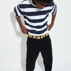 Upgrade your casual style with this trendy striped T-shirt. Featuring a classic crew neck and short sleeves, it's a versatile piece that adds a touch of flair to your wardrobe.