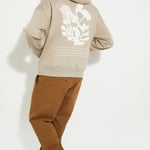 Bold prints and oversized comfort make this sweatshirt your go-to for effortless street style and all-day cosiness. It features an eye-catching graphic print on the back that brings a touch of streetwear edge to your look. The hooded neck, a kangaroo pocket, and full sleeves with ribbed trim complete the look.