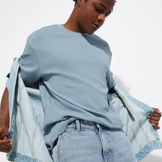 Embrace a laid-back vibe with this T-shirt, crafted in a solid tone with a textured surface. Designed with a relaxed fit for comfort, it features a crew neck and half sleeves, making it perfect for effortless style.