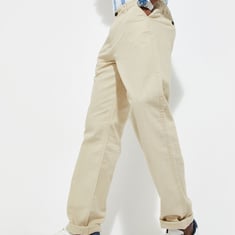 Elevate your casual ensemble with these straight-fit trousers, featuring four pockets, waist loops, and a button closure.