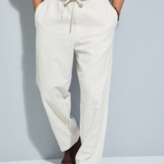 Designed for all-day ease, these textured comfort fit trousers feature a drawstring closure and four functional pockets, blending utility with a relaxed vibe.