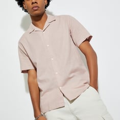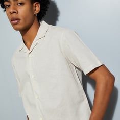 URB_N Men Textured Regular Fit Resort Linen Shirt