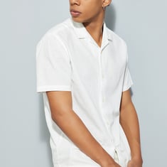 Smarten your style with this shirt cut in a regular fit profile for a roomy fit. It is styled with a resort collar, half sleeves, a front button placket, and a straight hem.