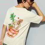 Savour the style with this T-shirt. The playful pasta graphic on the back adds a quirky touch to your outfit, while the oversized fit keeps you comfy all day. It has a round neck, drop shoulders, and half sleeves.
