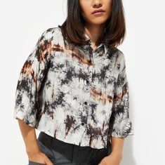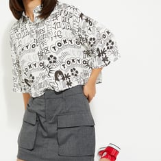 Elevate your street style with this fashion-forward cropped shirt. Featuring all-over prints, a chic spread collar, half sleeves, and a classic button placket, this shirt brings a bold, effortless vibe to any outfit. Its boxy profile adds a trendy edge, making it perfect for a casual outing.