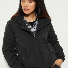 This cosy jacket is perfect for chilly days. It combines practicality and style, featuring full sleeves for warmth and a hooded neck. The button closure adds a classic touch, while the insert pockets provide convenient storage for small essentials.